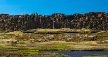 Hierna kom je aan bij Lögberg, een belangrijke plek in de IJslandse geschiedenis. Hier verzamelden mensen zich nog voor het jaar 1000 voor de AlÞingi, en hier werd ook rechtspraak uitgeoefend door het rechtsprekende orgaan: de Lögrétta. Lögberg betekent ook letterlijk de wetten-rots.