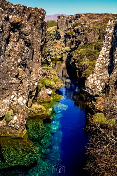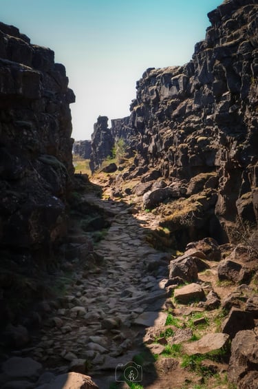 Als je aankomt bij de hoofdingang kun je eerst het uitkijk platform op om over het uitgestrekte landschap te kijken. Vervolgens loop je naar beneden door de Almannagjá. Dit is de oostelijke grens van de Noord-Amerikaanse tektonische plaat en staat gigantisch overeind, wat resulteert in de kloof waar je doorheen loopt. De rotsen zijn enorm en je voelt je heel klein als mens als je erdoorheen loopt.