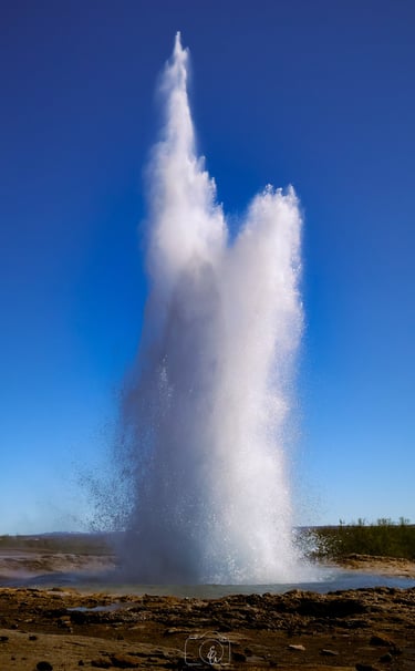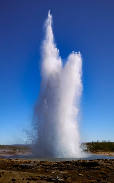 Toen ik aankwam zag ik het water al borrelen. Vol spanning stond ik te wachten wat er ging gebeuren: hoe hoog zou de geiser wel niet gaan? En toen... floep! Een meter hoog. Alle mensen keken elkaar aan of dit het was en sommige liepen meteen weg. Hierbij dus de tip: blijf wachten en je wordt beloond! Want nog geen paar minuten later ging Strokkur weer en hoppa, zo'n 20 meter hoge pilaar van water en stoom schoot de lucht in! Je kunt hier heerlijk van deze natuurpracht blijven genieten want Strokkur heeft een korte interval van 4 tot 8 minuten.