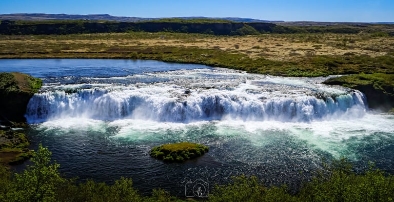 Faxafoss is een brede waterval. Vanaf de parkeerplaats zie je de waterval bijna meteen en hoef je nog maar 5 minuten het pad naar beneden te volgen om vervolgens aan de voet van de waterval te staan. Dit is zeker indrukwekkend!